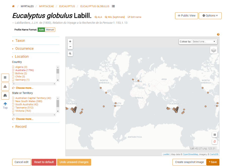 - Enter “Edit” mode for the eFlora profile of interest. The distribution map will be at the top of the page.