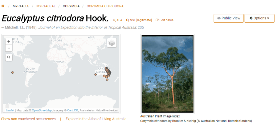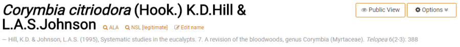 Note that the NSL linkage now flows through to the Corymbia citriodora search in APNI, and has updated the protologue to reflect that.