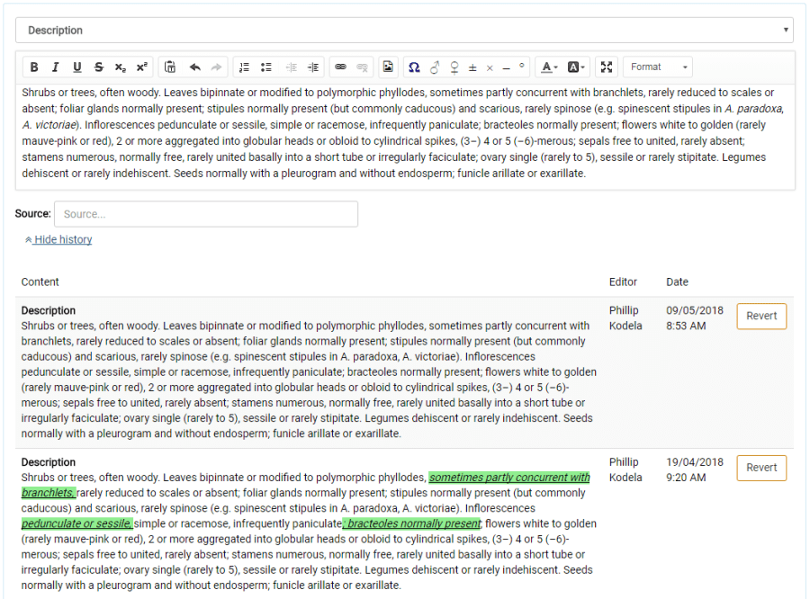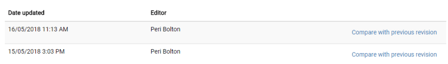 To revert to a previous version, click ‘revert’ beside the relevant version.